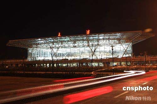 4月28日零時,2008年北京奧運會主降機(jī)場之一和首都機(jī)場第一備降機(jī)場——天津濱海國際機(jī)場新航站樓正式啟用。據(jù)機(jī)場負(fù)責(zé)人介紹,北京奧運會期間,從該機(jī)場進(jìn)出港的奧運官員、運動員及中外旅客預(yù)計超過三十萬人次。中新社發(fā) 段毅剛 攝