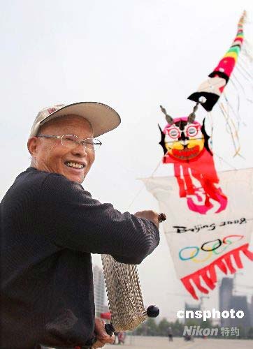 圖:河南76歲老人放飛奧運(yùn)主題風(fēng)箏