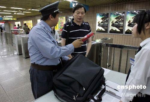 5月10日上午,在上海徐家匯地鐵站的安全檢查通道,一乘客因攜帶危險(xiǎn)物品被勸說(shuō)退票。從今天起,上海軌道交通所有車站開(kāi)辟專用安全檢查通道,由專人全天候逐一對(duì)乘客攜帶的箱包進(jìn)行安全檢查,據(jù)了解,從4月15日至今,上海軌交查堵危險(xiǎn)品1200余件。主要有液化氣鋼瓶、煙花、油漆、裝修膠水等,其中,依法對(duì)700余名違法攜帶危險(xiǎn)物品的人員依法做出行政處罰。中新社發(fā) 潘索菲 攝