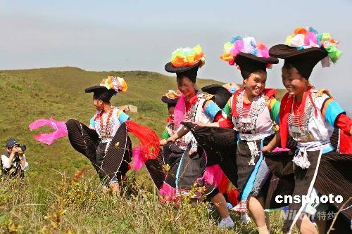 5月11日,是貴陽(yáng)市苗族同胞農(nóng)歷“四月八”的傳統(tǒng)節(jié)日。貴陽(yáng)市數(shù)千苗族同胞身著節(jié)日盛裝,聚集在貴陽(yáng)市花溪區(qū)高坡鄉(xiāng)云頂村草場(chǎng)載歌載舞,歡慶一年一度的苗族節(jié)日。小伙子們吹起歡快的蘆笙,姑娘們跳起苗族的花綢舞,盡情的對(duì)歌談心,祈求今年風(fēng)調(diào)雨順,五谷豐登。中新社發(fā) 彭年 攝