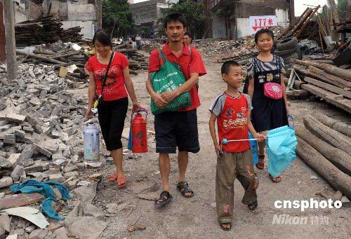 6月14日,重慶萬州城區(qū)三峽工程4期移民搬遷區(qū)域,拆遷工作正常進(jìn)行,一家4口人走在177米水位線下的拆遷區(qū)域中。6月15日,奧運(yùn)火炬將來到三峽庫區(qū)重慶萬州傳遞。中新社發(fā) 廖攀 攝