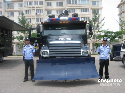為了確保奧運會帆船帆板比賽的安全進行,青島公安部門引進了排爆機器人、反恐水炮車等一大批具有國際一流水平的反恐防爆裝備。圖為公安部門引進的反恐水炮車,目前全國僅有三輛。中新社發(fā) 李進梅 攝