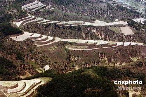 鳥(niǎo)瞰中國(guó)西部特有的黃土高原豪邁柔情,7月2日,奧運(yùn)圣火將來(lái)到陜西延安進(jìn)行傳遞。中新社發(fā) 廖攀 攝