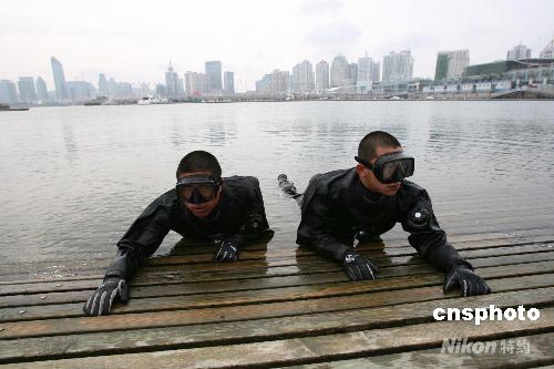暑期,青島邊防支隊駐奧帆中心的特勤官兵在奧運會帆船比賽場地進(jìn)行適應(yīng)性潛水訓(xùn)練,在貼近實戰(zhàn)狀態(tài)下提高隊員處置突發(fā)事件等能力。第29屆奧運會帆船帆板比賽將于2008年8月9日至23日在青島國際帆船中心及周邊水域舉行。 中新社發(fā) 王瑤 攝