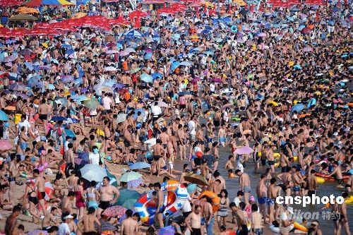 奧運(yùn)會(huì)臨近,中外游人紛紛來(lái)到奧帆賽舉辦地青島觀光看奧帆賽。臺(tái)風(fēng)“鳳凰”影響過(guò)后,青島各海濱浴場(chǎng)陸續(xù)向游人開(kāi)放。八月三日,青島第一海水浴場(chǎng)的中外游人突破十萬(wàn)人,是今年入夏以來(lái)青島第一海水浴場(chǎng)的最高紀(jì)錄。中新社發(fā) 曲連遵 攝