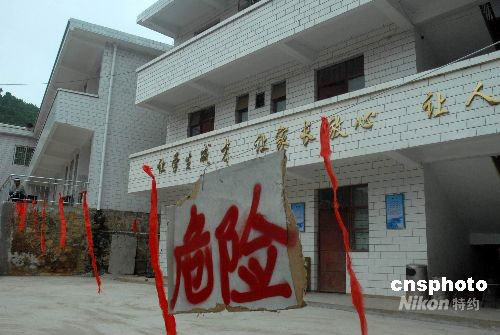 9月1日,受“8·30”地震余震影響,四川省攀枝花市決定所有中小學(xué)開學(xué)時間推遲一周,將于9月8日開學(xué)。圖為攀枝花市鹽邊縣和愛鄉(xiāng)中學(xué)一棟教學(xué)樓在地震中因受損嚴(yán)重,拉起紅色警戒線。中新社發(fā) 石雨 攝