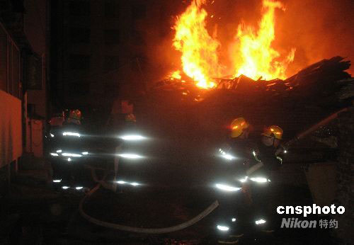 9月9日,黑龍江省哈爾濱市南崗區(qū)西大直街334號(hào)院內(nèi)堆放木板等雜物的倉(cāng)房起火,居住在倉(cāng)房附近樓內(nèi)的居民安全撤出,消防戰(zhàn)士奮戰(zhàn)到5時(shí)30分左右,終于控制火勢(shì)。此次火災(zāi)沒(méi)有造成人員傷亡,火災(zāi)起因還在進(jìn)一步調(diào)查中。中新社發(fā) 王忠言 攝