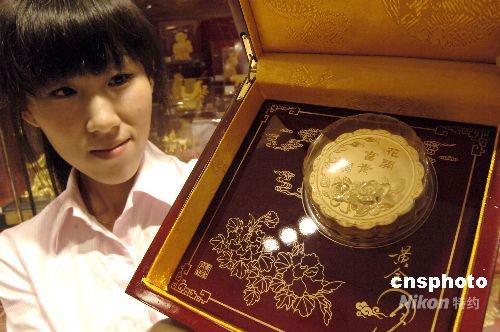 中秋佳節(jié)將至,純金月餅及節(jié)日飾品搶先登場,融節(jié)慶氣氛與黃金投資合二而一的商家創(chuàng)意,推動(dòng)北京中秋市場熱潮涌動(dòng)。中新社發(fā) 徐曦弋 攝
