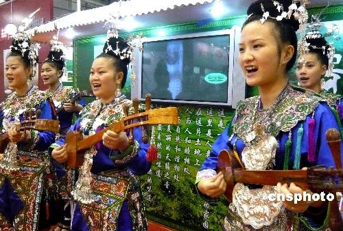 10月13日,正在北京舉行的第五屆中國國際茶業(yè)博覽會(huì)(簡(jiǎn)稱第五屆茶博會(huì))吸引眾多商家和參觀者,是次由中國商務(wù)部外貿(mào)發(fā)展局、中國土產(chǎn)畜產(chǎn)進(jìn)出口總公司聯(lián)合主辦的茶博會(huì)推出中國茶樣大巡展"活動(dòng)、"有機(jī)"名優(yōu)茶評(píng)選、世界茶文明之旅以及豐富多采的茶藝表演大賽暨"世界茶文明之旅---中華茶藝之星"選拔大賽。圖為在茶博會(huì)上來自中國貴州參展團(tuán)的少數(shù)民族茶藝文化表演隊(duì)為參觀者表演當(dāng)?shù)孛褡甯栉。中新社發(fā) 錢興強(qiáng) 攝