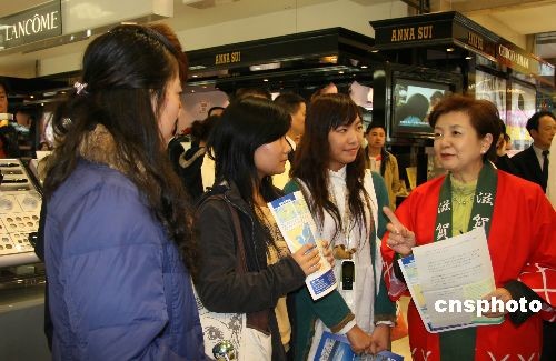10月31日,日本滋賀縣知事嘉田由紀子在湖南平和堂商場向消費者推介滋賀縣的旅游資源。當(dāng)天,日本滋賀縣在長沙舉行了旅游推介大會,盛邀洞庭湖的居民到日本游覽琵琶湖。由于該縣一些主要景點都是模仿湖南的“瀟湘八景”而命名,引起了與會人員的強烈興趣。中新社發(fā) 鄧霞 攝