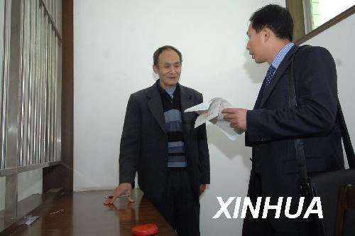 11月18日,周正龍?jiān)谘柨h看守所辦理相關(guān)手續(xù)。周正龍?jiān)?1月17日晚22時(shí)30分二審法院改判緩刑后,于18日上午11時(shí)許,在旬陽縣看守所辦理完相關(guān)手續(xù)后,離開看守所回家。新華社記者丁海濤攝