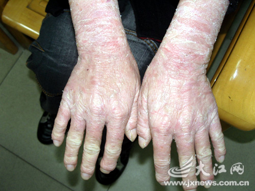 從生下來開始,全身皮膚就紅腫脫皮,現(xiàn)在已經(jīng)23歲的余干縣余小姐的皮膚就像老人的皮膚一樣粗糙。