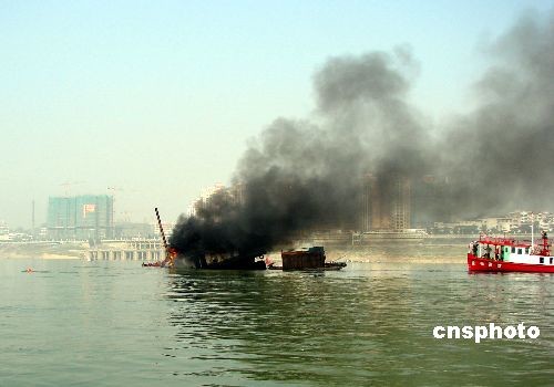 十一月三十日早上九時三十分許,廣西梧州西江江面一工程船兩度爆炸,當(dāng)?shù)孛癖姺Q,巨響幾公里外都能聽到。知情者透露,爆炸至少造成工程船上兩人重傷、四人輕傷。目前事發(fā)原因正在進一步調(diào)查了解中,傷亡人數(shù)有待核實。中新社發(fā) 王刀 攝