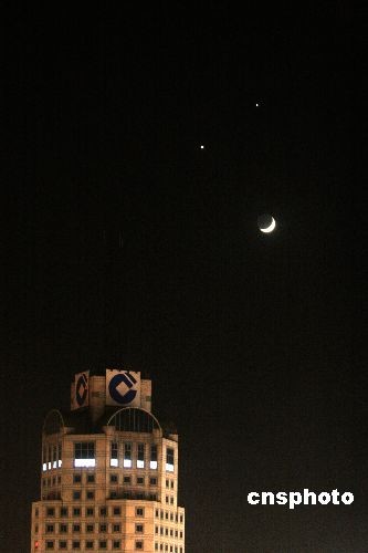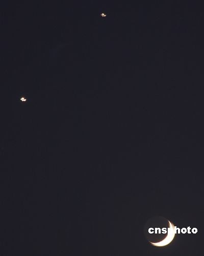 12月1日,夜幕降臨后,夜空中最明亮的三顆天體——月亮、金星和木星在西南方的低空齊匯人馬座。當(dāng)晚在天色晴朗的中國各地乃至東半球大部分地區(qū)都可觀賞到這少見而特殊的天象。