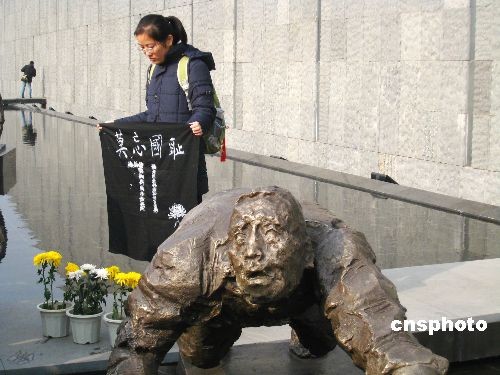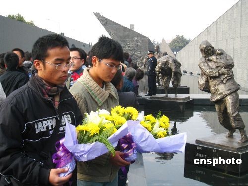 2008年12月13日是南京大屠殺遇難同胞71周年紀(jì)念日。南京許多大學(xué)生利用雙休日,自發(fā)來到侵華日軍南京大屠殺遇難同胞紀(jì)念館,和廣大市民一起悼念南京大屠殺遇難同胞。中新社發(fā) 谷昌旺 攝