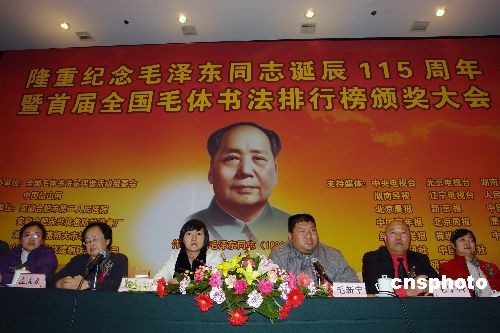 12月17日,紀(jì)念毛澤東同志誕辰115周年暨首屆全國毛體書法家排行榜頒獎(jiǎng)典禮在北京舉行。毛澤東嫡孫毛新宇到會(huì)祝賀,并為成功晉級(jí)的毛體書法家頒獎(jiǎng)。 中新社發(fā) 王磊 攝