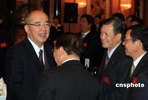 12月20日,中國國民黨主席吳伯雄在上海出席第四屆兩岸經(jīng)貿(mào)文化論壇,并與臺商共進午餐。中新社發(fā) 湯彥俊 攝