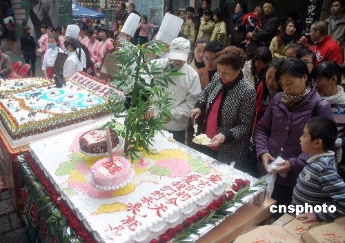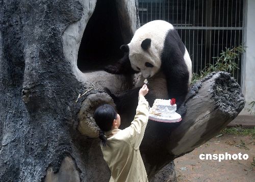 5.12汶川大地震使四川臥龍大熊貓中心受到嚴重破壞,首批四只“災(zāi)區(qū)熊貓”被疏散安置到福州熊貓世界,經(jīng)過半年的治療休養(yǎng)已適應(yīng)了福州生活,身體與精神狀態(tài)逐步恢復(fù)到震前情況。為了讓“災(zāi)區(qū)熊貓”過好新年,2008年12月28日 ,福州熊貓世界舉行了主題為“災(zāi)區(qū)熊貓,新年好”的熊貓和諧世界活動紀念月活動,讓更多市民一起來關(guān)愛災(zāi)區(qū)大熊貓。中新社發(fā) 張 斌 攝