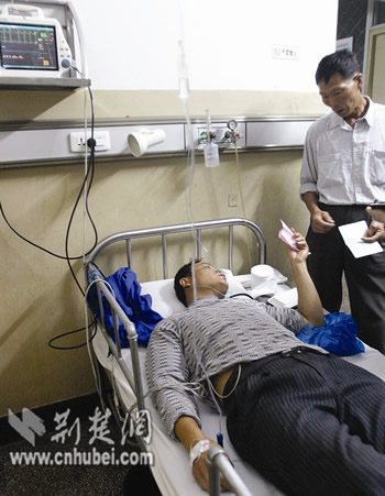 昨日,記者在仙桃市人民醫(yī)院見到了3名癥狀較重的患者;颊咄跸让舴Q,昨日凌晨1時許,他突然開始上吐下瀉,四肢無力。在家硬撐了一夜后,昨日清早,他被家人送到醫(yī)院。他只聽醫(yī)生說是食物中毒,跟前日中午參加的一場婚宴有關(guān)。