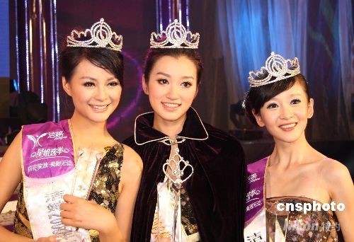 8月4日晚,2008星姐選舉在長(zhǎng)沙落幕,圖為本年度星姐冠軍沈思倩(中)、第一亞軍沈夢(mèng)辰(左)、第二亞軍王伊(右)。星姐選舉已舉辦九年,曾是中國(guó)大陸選秀節(jié)目的領(lǐng)頭羊,與往屆不同的是,本屆星姐選舉有湖南、湖北、河南三省佳麗參賽,三省媒體聯(lián)動(dòng)。中新社發(fā) 張家根 攝