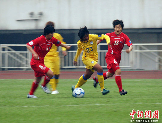 中新網(wǎng)成都5月20日電(記者劉忠俊 楊杰 劉賢)5月20日下午,2010年女足亞洲杯A組比賽在成都體育中心拉開戰(zhàn)幕,亞洲勁旅朝鮮女足迎戰(zhàn)泰國女足。開場3分多鐘朝鮮隊(duì)17號(hào)前鋒全明花率先攻進(jìn)第一球,隨后10號(hào)前鋒金英愛再進(jìn)一球,上半場朝鮮隊(duì)以2:0暫時(shí)領(lǐng)先。今晚日本女足將與緬甸女足展開對(duì)決。