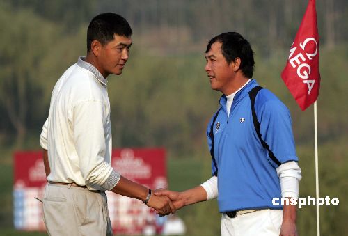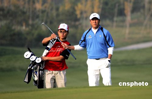 10月21日,歐米茄高爾夫球錦標(biāo)賽北京站比賽收桿,老將張連偉四輪比賽后,以總成績283桿、低于標(biāo)準(zhǔn)桿5桿的成績奪得冠軍。中新社發(fā) 張宇 攝