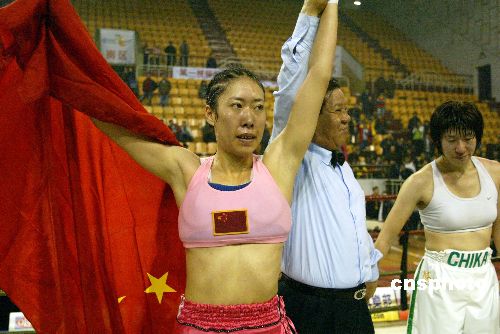 11月9日,由國家體育總局拳跆運(yùn)動(dòng)管理中心,PABA泛亞洲拳擊協(xié)會,CPBO中國職業(yè)拳擊機(jī)構(gòu)主辦的WBA PABA女子次輕量級拳王爭霸賽在遼寧丹東舉行。丹東籍女拳手高麗君對決日本女拳手水谷知佳,以點(diǎn)數(shù)獲勝,奪得PABA女子次輕量級金腰帶,成為亞洲次輕量級女拳王。中新社發(fā) 陳浩浩 攝