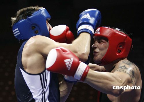 十一月十九日,“好運(yùn)北京”2007年國際拳擊邀請賽在北京工人體育館進(jìn)行第四單元的比賽,本次邀請賽有來自十七個國家和地區(qū)的十八支隊(duì)伍參加,采用單敗淘汰制方式,進(jìn)行預(yù)賽、半決賽、決賽共七十場比賽,比賽時間為十一月十七日至二十二日。中新社發(fā) 盛佳鵬 攝