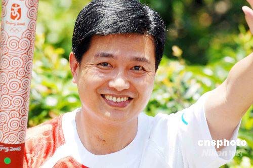 5月8日中午,奧運(yùn)火炬接力傳遞在深圳舉行,社會(huì)各界208名火炬手穿越深圳。圖為深圳第一位打破世界紀(jì)錄的運(yùn)動(dòng)員韓星元在第四棒火炬?zhèn)鬟f中。中新社發(fā) 陳文 攝