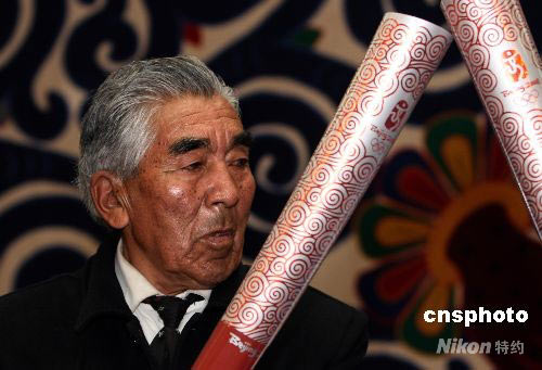 6月20日,北京奧運(yùn)圣火接力活動在西藏拉薩舉行前夕,75歲的藏族“登山英雄”貢布成為首棒火炬手。1958年,時為解放軍戰(zhàn)士的貢布被借調(diào)到國家登山隊(duì),開始與登山運(yùn)動結(jié)下不解之緣。1960年5月25日,他與王富洲、屈銀華一起登上世界第一峰——珠穆朗瑪峰,實(shí)現(xiàn)人類首次從北坡登上珠峰的愿望,開創(chuàng)中國登山運(yùn)動的新紀(jì)元。 中新社發(fā) 廖攀 攝
