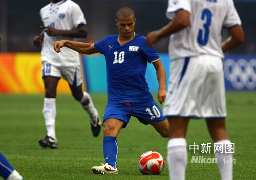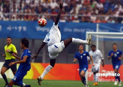 8月7日,北京奧運(yùn)男足比賽開賽,洪都拉斯隊(duì)與意大利隊(duì)比賽在秦皇島奧體中心舉行,上半場(chǎng)意大利隊(duì)2:0暫時(shí)領(lǐng)先洪都拉斯隊(duì)。中新社記者 劉新 攝