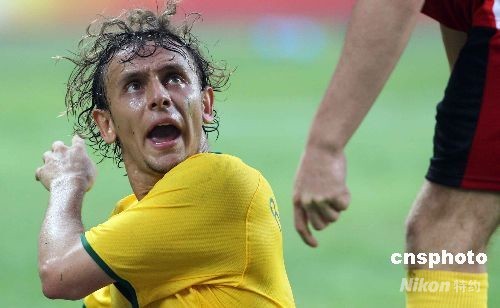 8月7日,北京奧運(yùn)沈陽足球分賽場舉行男足預(yù)賽,巴西隊(duì)1:0勝比利時(shí)隊(duì)。圖為巴西球員RAFINHA怒對比利時(shí)犯規(guī)球員。中新社發(fā) 張宇 攝