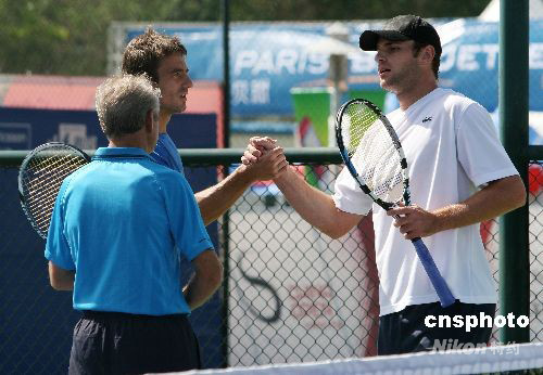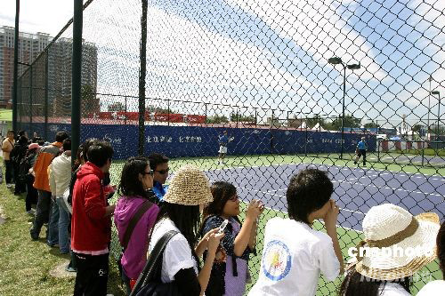 9月25日,中國(guó)網(wǎng)球公開賽訓(xùn)練場(chǎng)上,西班牙球星羅布雷多和美國(guó)球星羅迪克同場(chǎng)練球,吸引了眾多球迷。中新社發(fā) 魯谷 攝