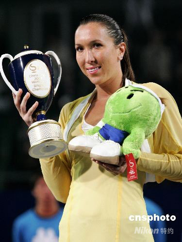 9月28日,在2008年中國(guó)網(wǎng)球公開(kāi)賽女單冠亞軍爭(zhēng)奪戰(zhàn)中,世界排名第二的塞爾維亞美女揚(yáng)科維奇以6-3/6-2擊敗世界排名第7的俄紅粉好手庫(kù)茲涅佐娃,奪得女單冠軍。這是她連續(xù)5次參賽以來(lái)第一次奪得中網(wǎng)女單冠軍。中新社發(fā) 富田 攝