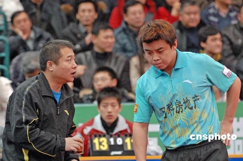 12月6日晚,2008年乒超聯(lián)賽第二階段比賽繼續(xù)進(jìn)行,在男團(tuán)一場保級大戰(zhàn),王皓雖拼勁全力,連勝錦州銀行兩員大將雷振華、徐輝,為球隊(duì)貢獻(xiàn)兩分,但困于球隊(duì)實(shí)力單薄,八一隊(duì)還是以2-3負(fù)于常規(guī)賽倒數(shù)第二錦州銀行。中新社發(fā) 谷進(jìn) 攝