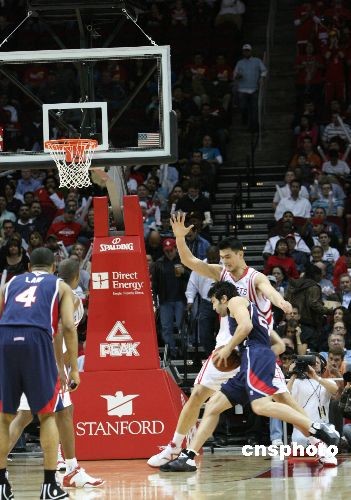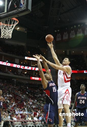 中國球員姚明所在的NBA火箭隊12月9日在休斯頓主場迎戰(zhàn)亞特蘭大老鷹隊。最后火箭以92-84取勝老鷹,贏得背靠背勝利的同時終止連敗。姚明拿下24分19個籃板,為全隊最高。中新社發(fā) 歐文 攝