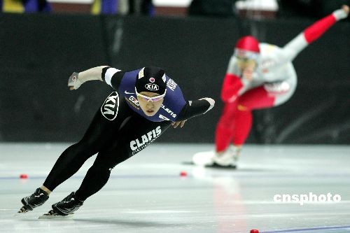 2月19日,第24屆大學(xué)生冬季運動會進入第二天的比賽,速度滑冰女子500米項目決出本屆大冬會首枚金牌,韓國選手李相花(左)以38秒16的成績獲得第一名,同時刷新了由她自己保持的大冬會記錄,中國選手于靜位列第二,另一名中國選手張爽取得銅牌。中新社發(fā) 富田 攝