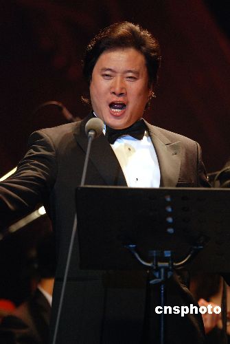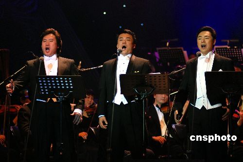 10月24日晚,華人三大男高音丁毅、范競(jìng)馬、戴玉強(qiáng)在北京傾情高歌,由此,《我們的奧運(yùn)》之“全球華人三大男高音”世界巡演音樂會(huì)正式啟動(dòng)。當(dāng)晚,三人除了演唱西洋經(jīng)典歌劇選段《今夜無(wú)人入睡》、《重歸蘇蓮?fù)小返韧猓演唱了多首中國(guó)民歌和祝福奧運(yùn)的《北京頌歌》。承辦方華視嘉禾介紹說(shuō),“三高”此次巡演是代表全球華人藝術(shù)家向北京2008年奧運(yùn)會(huì)獻(xiàn)上的一份祝福,也是表達(dá)對(duì)不久前去世的世界著名男高音歌唱家帕瓦羅蒂的緬懷。不久前,丁毅、范競(jìng)馬、戴玉強(qiáng)已通過(guò)工商局注冊(cè)為“華人·三高”的品牌。至此,中國(guó)聲樂界也有了“三高”。他們表示,“三高”的提法并非指“中國(guó)最頂尖的三大男高音”,而只是眾多優(yōu)秀男高音之中具有代表性的三位。中新社發(fā) 李學(xué)仕 攝
