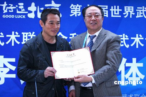 11月12日,昔日優(yōu)秀的武術運動員、如今的國際著名武打影星李連杰,被國際武術聯合會和中國武術協會任命為武術形象大使。中新社發(fā) 富田 攝