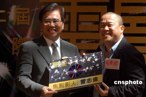 二月二十一日,香港國際電影節(jié)協(xié)會主席王英偉(左)在記者會上向曾志偉頒獎。由香港國際電影節(jié)協(xié)會主辦的第三十二屆香港國際電影節(jié),將于三月十七日至四月六日舉行。中新社發(fā) 譚達明 攝
