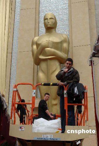 第八十屆奧斯卡金像獎2月24日晚將在好萊塢揭曉。當(dāng)天中午柯達劇場門口最大一尊奧斯卡雕塑揭去雨衣,準(zhǔn)備迎接頒獎盛典。中新社發(fā) 張煒 攝