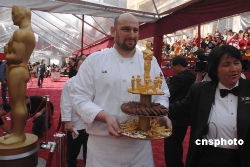 圖:奧斯卡頒獎(jiǎng)在即 巧克力小金人亮相紅地毯