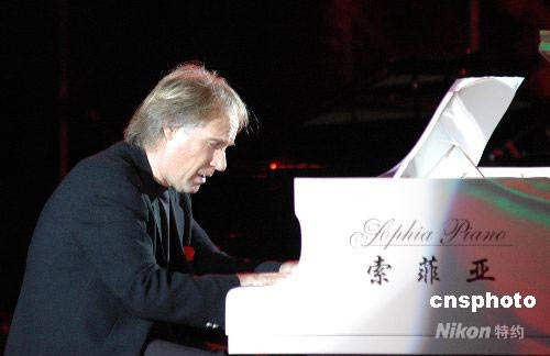 六月二十日晚,享譽世界的浪漫“鋼琴王子”理查德·克萊德曼,在廣西南寧市舉行賑災演出。他本人向四川地震災區(qū)及廣西洪水災區(qū)捐款,當晚的演奏用琴成功拍賣,除成本外,拍得款項將捐獻給災區(qū)人民。中新社發(fā) 蔣雪林 攝