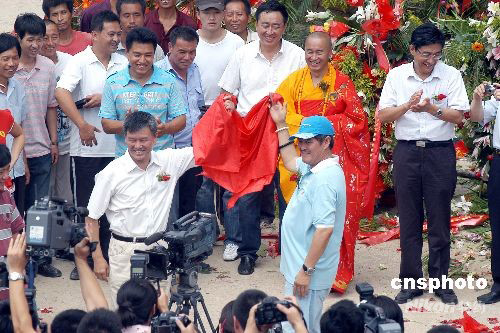 7月28日,籌備多時(shí)的趙本山新戲《關(guān)東大先生》,在關(guān)東影視城正式舉行開機(jī)儀式,屆時(shí),趙本山將攜劇中男一號(hào)、愛徒張小飛及劇中另外3位女主角陳美心、于月仙和吳一迪一起閃亮登場(chǎng)!多l(xiāng)村愛情》中的“劉大腦袋”、本山公司的副總裁劉流也會(huì)在劇中出演“哈貝勒”這個(gè)重要角色。中新社發(fā) 文契 攝