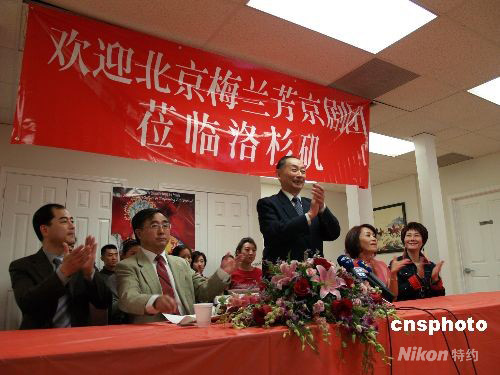 當?shù)貢r間10月7日,北京京劇院梅蘭芳京劇團60多人飛抵美國洛杉磯,將在好萊塢奧斯卡頒獎典禮場地柯達劇院連續(xù)2天、演出3場梅派經(jīng)典京劇好戲:“貴妃醉酒”、“楊門女將”、“白蛇傳”、“鬧天宮”“霸王別姬”、“天女散花”等。中國京劇名角的到來使好萊塢又掀起一股“中國熱”。 中新社發(fā) 盧威 攝