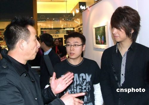 以“新鮮城市 綠色視界”為主題的環(huán)保攝影展12月15日在上海某商場舉行,“好男兒”宋曉波的兩件作品《風(fēng)》和《蒲扇》,也參加了該攝影展。中新社發(fā) 井韋 攝