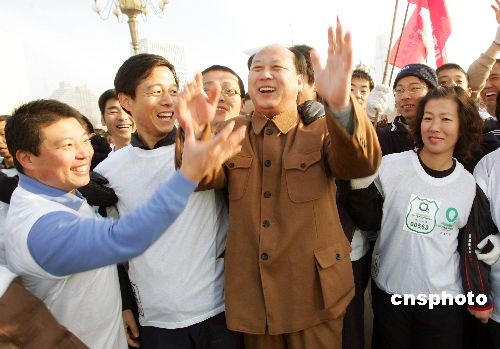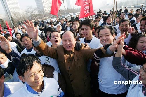 12月26日上午,長(zhǎng)相酷似偉人毛澤東的特型演員張向東先生應(yīng)邀來(lái)到山東濰坊,一露面便吸引了當(dāng)?shù)卦S多市民與其合影留念。張向東從形象、口音到發(fā)型與一代偉人毛澤東的貌相十分相似,許多市民都為其扮相逼真叫絕。中新社發(fā) 張馳 攝