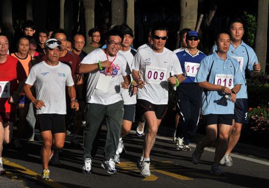 中新網(wǎng)8月23日電 第二屆“光仁陪你慢慢跑”慈善路跑活動22日上午在臺北熱鬧開跑,馬英九應邀到場,換上運動短褲,大秀“馬腿”。在二千多名選手中,他的運動服已不再顯得“特別”,開始變得“保守”。而早前李登輝批評他時,曾以他的短褲做文章。