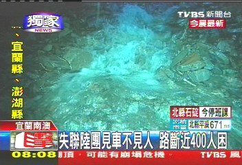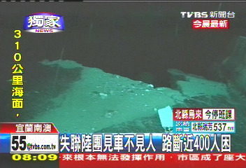 中新網(wǎng)10月22日電 據(jù)臺(tái)灣TVBS報(bào)道,宜蘭大淹水,蘇花公路更是處處坍方,甚至傳出有大陸游客團(tuán)的游覽車受困。該媒體記者挺進(jìn)現(xiàn)場(chǎng),只看到游覽車空車,人員不知去向,不知是否平安;臺(tái)九線大約115公里處,部分路段的路基完全被淘空,土石滑落一兩百米的山下,附近路面更變成小溪、不斷淹水。