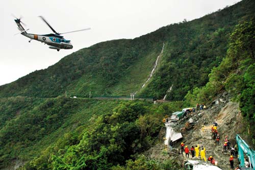 空援同時(shí),臺(tái)軍特種作戰(zhàn)部隊(duì)、消防部門特種搜救隊(duì)都出動(dòng),“公路總局”以重型機(jī)具清道,只是山坡壁已成泥石漿,才一挖,旁壁的土石又流下,如此重復(fù)施作,最后終于勉強(qiáng)清出一條便道。